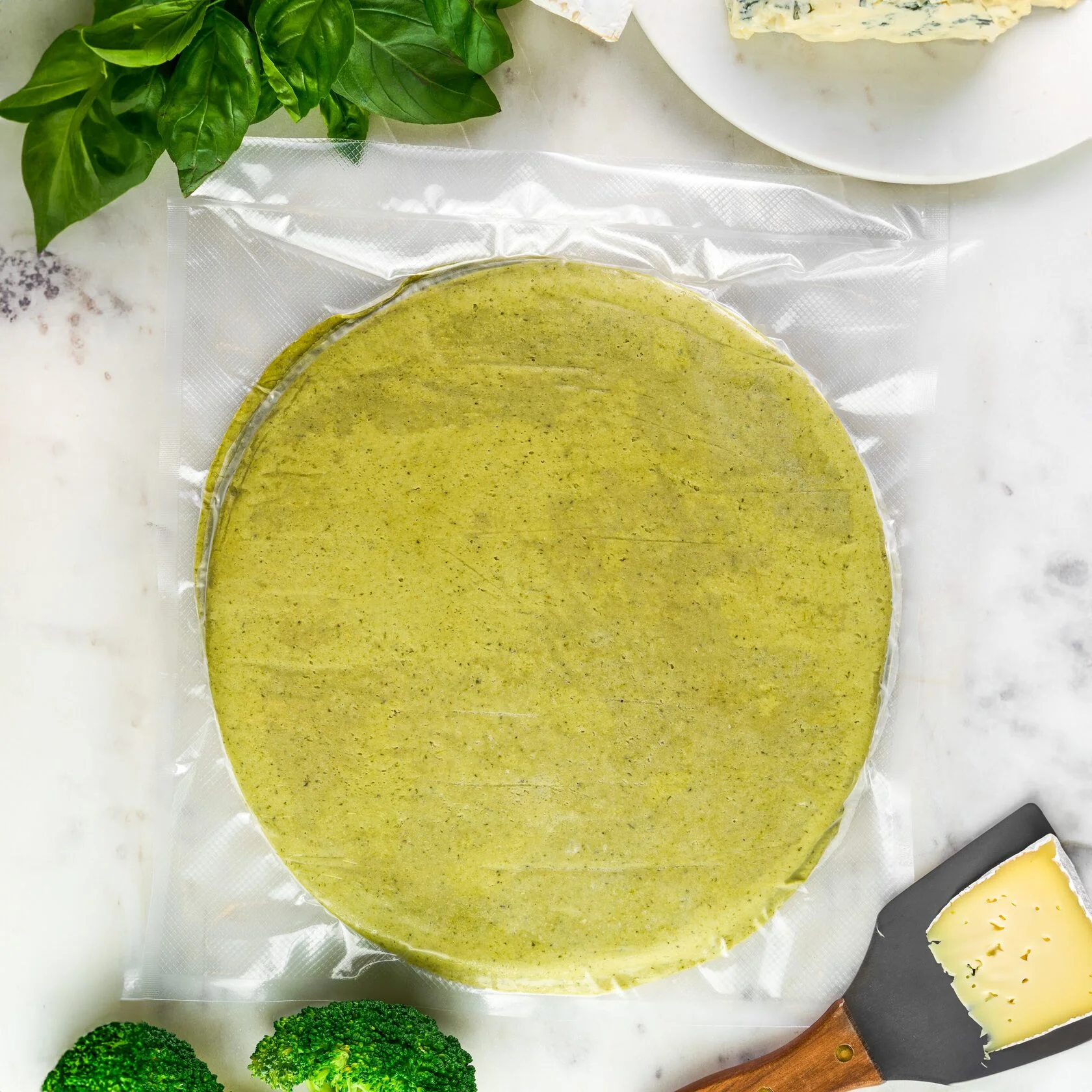 Ingredientes base de pizza: brócoli, harina de maíz, harina de arroz, psyllium, aceite de oliva virgen extra.